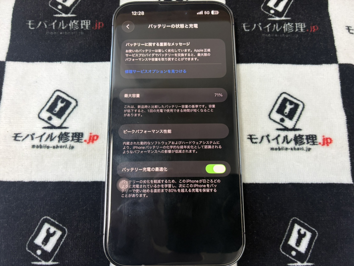 iPhone修理専門店のモバイル修理.jp 伊勢崎本店です。 今回は伊勢崎市内よりご来店のお客様のご紹介です。依頼内容は、バッテリーが劣化して電池残量が50%でも突然電源が落…
