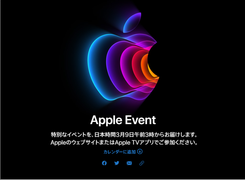 日本時間33日未明、Apple公式サイトで39日午前3時より、今年初となるAppleスペシャルイベントの開催が公表されました。例年のイベント開始時刻より1時間遅い開始のため、イベントをオンタイムで閲覧される方は注意が必要です。