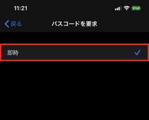 もしパスコードを要求で変更しようとしたのに、即時以外が選択できない場合はTouch IDまたはFace IDの生体認証が有効になっている可能性があります。
