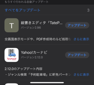 そのうえで下の方にスクロールさせていくと、アップデートで配信されたアプリの一覧が表示されます。ここで「すべてをアップデート」をタップすると、アップデートできるもののすべてが表示されます。