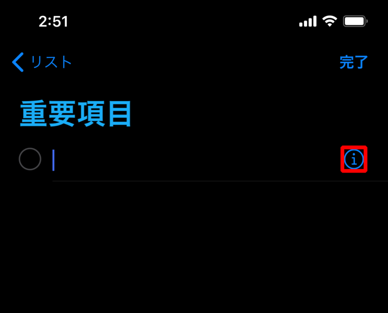 3. リマインダーのなかにある右横の「情報(i)」アイコンをタップします