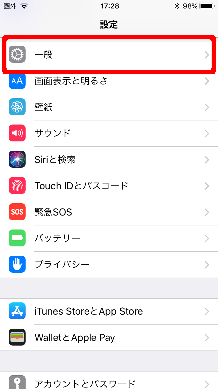 2. 次に「一般」をタップします