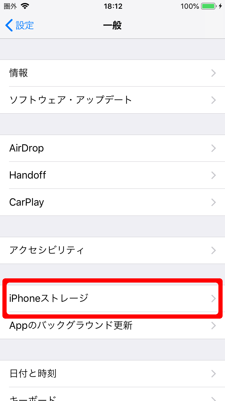 3. 次に「iPhoneのストレージ」をチェックします