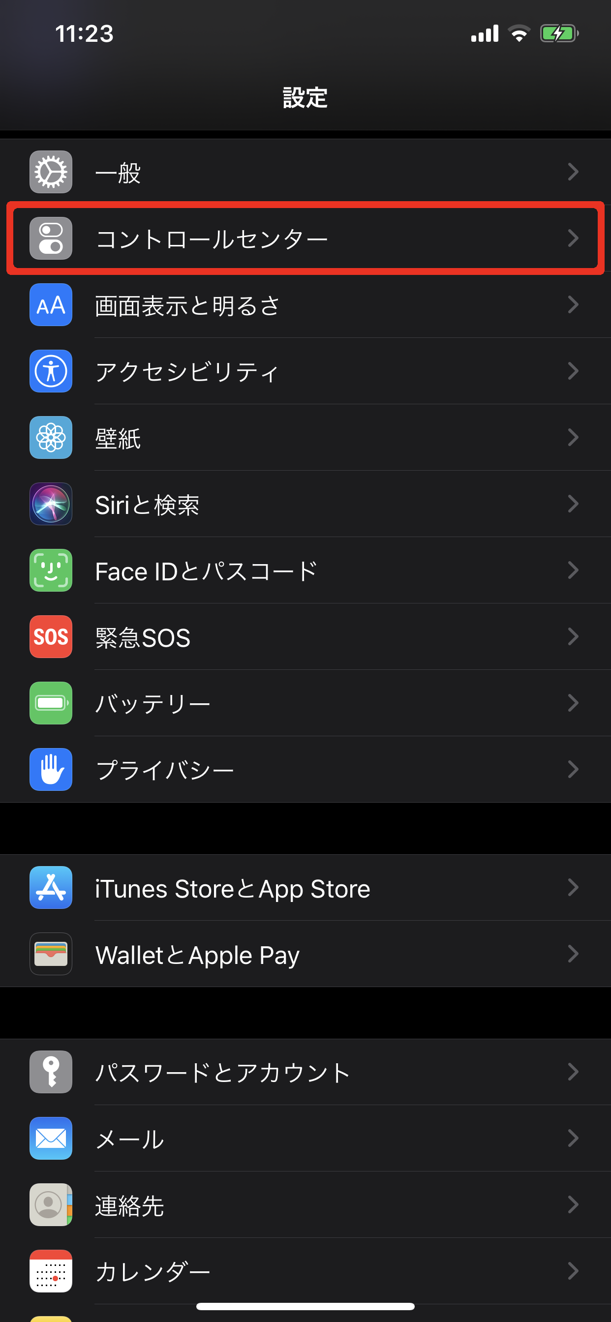 2. 次に設定のなかにあるコントロールセンターをタップします