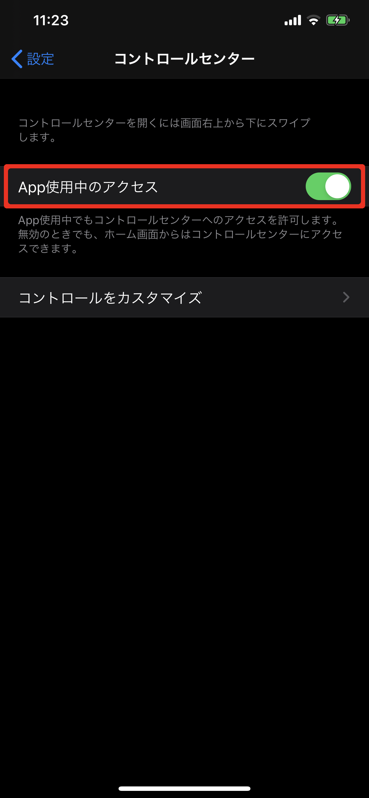 iPhoneのコントロールセンターをアプリの操作中に表示させない方法