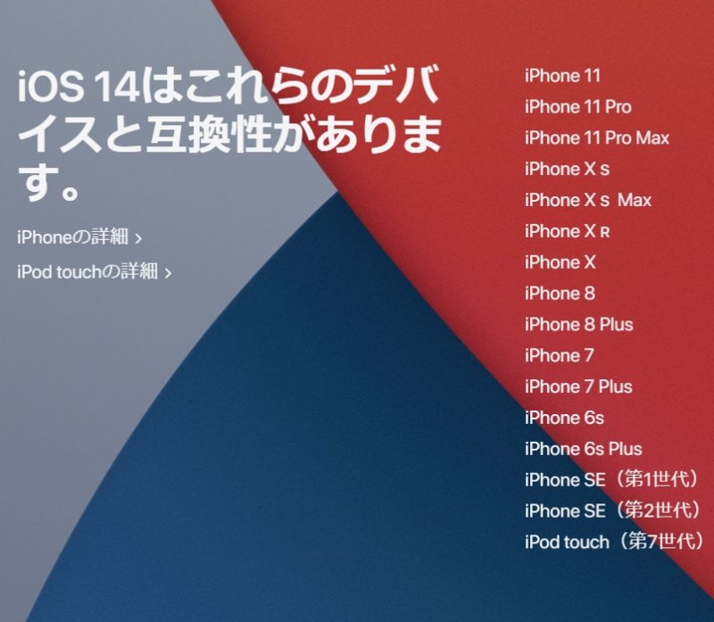 そんなすごいiOS14ですが対応機種が気になってしま羽化もしれませんが、最新のiPhone SE(2nd)からiPhone6s/6s Plus、iPhone SE(1st)、さらにはiPod touch(7th)と、iOS13と変わらないモデルで動作します。だからまだまだ現役でiPhone6sを使いたい人にとっては、朗報といえるでしょう。