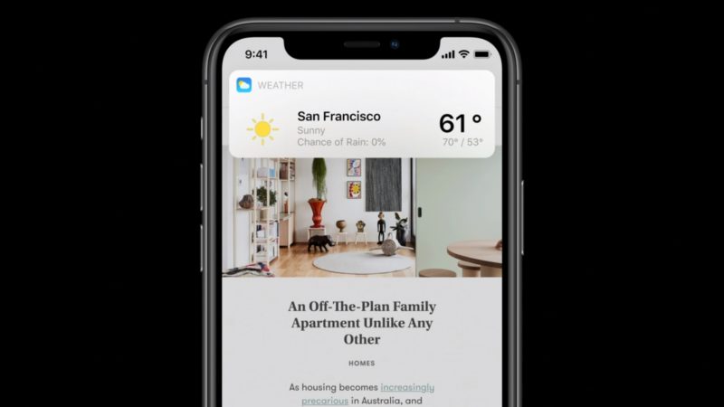 Siriで天気を確認したときもSiriのフルスクリーンの画面に表示されていた情報も、バナーのような表示方法に変わります。