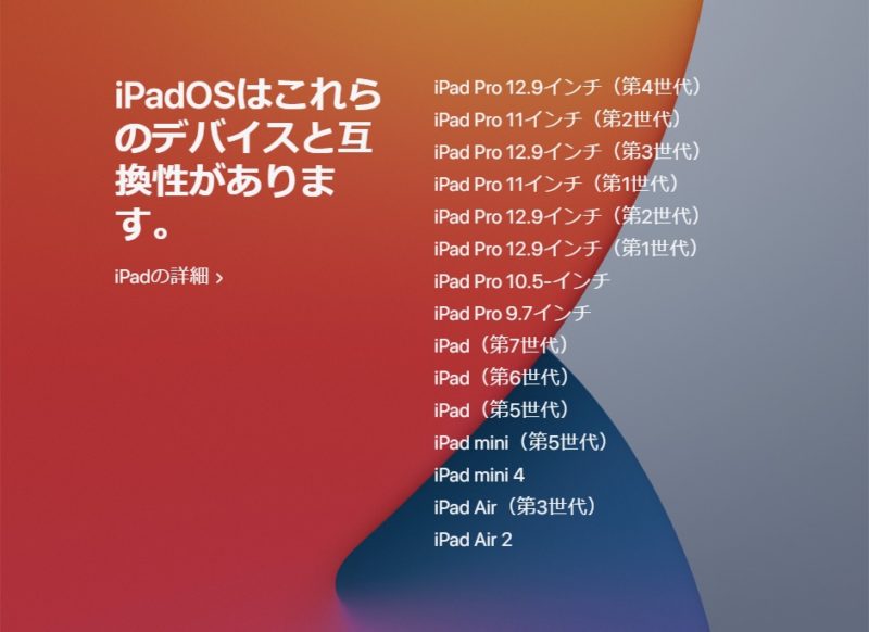気になるiPadOS14が利用できるデバイスの一覧はこちらになります。あなたが使っているモデルが存在するならば、今年秋頃にリリースされるiPadOS14で、今までより更に使いやすく進化したiPadを体験しましょう。