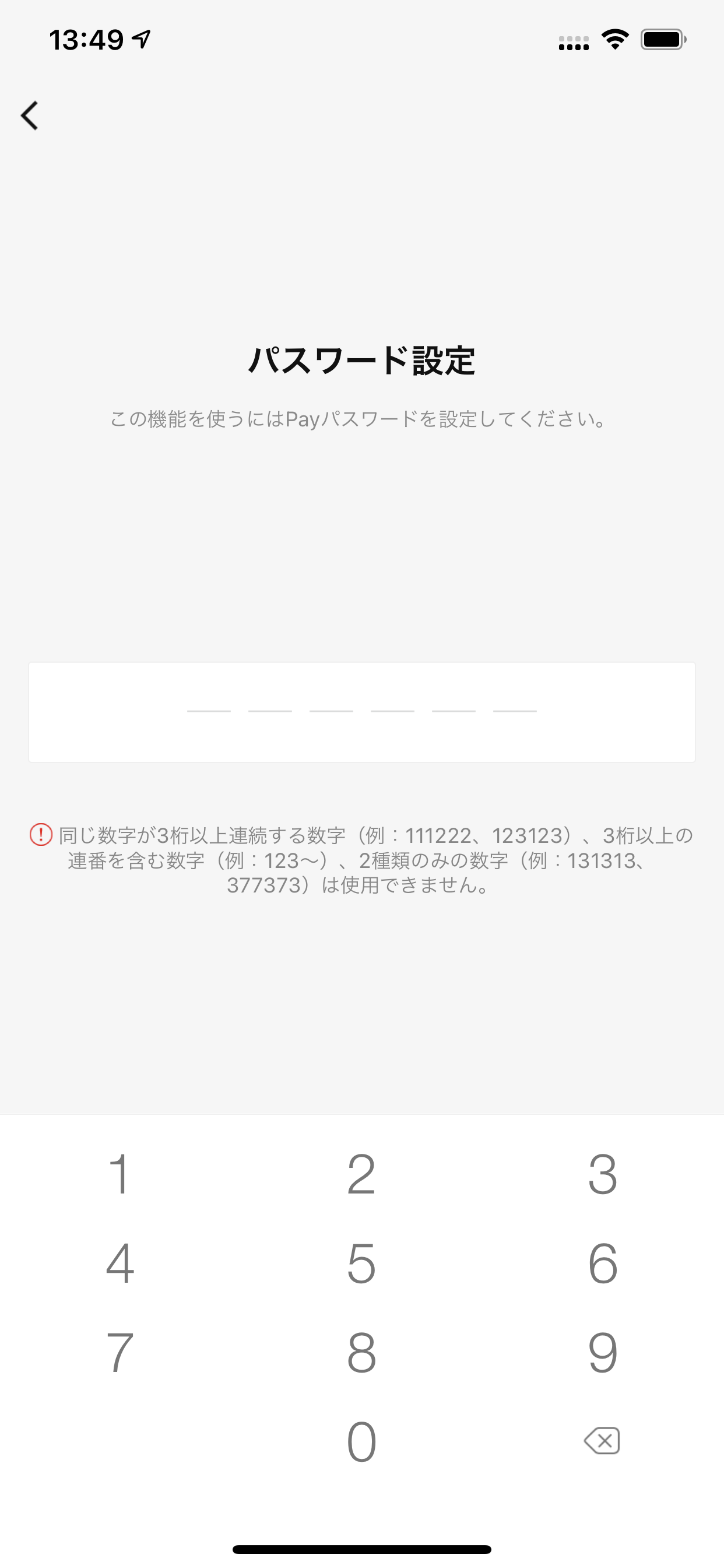 ④初めてLINE Payを利用する方はパスワードの登録をおこないます。